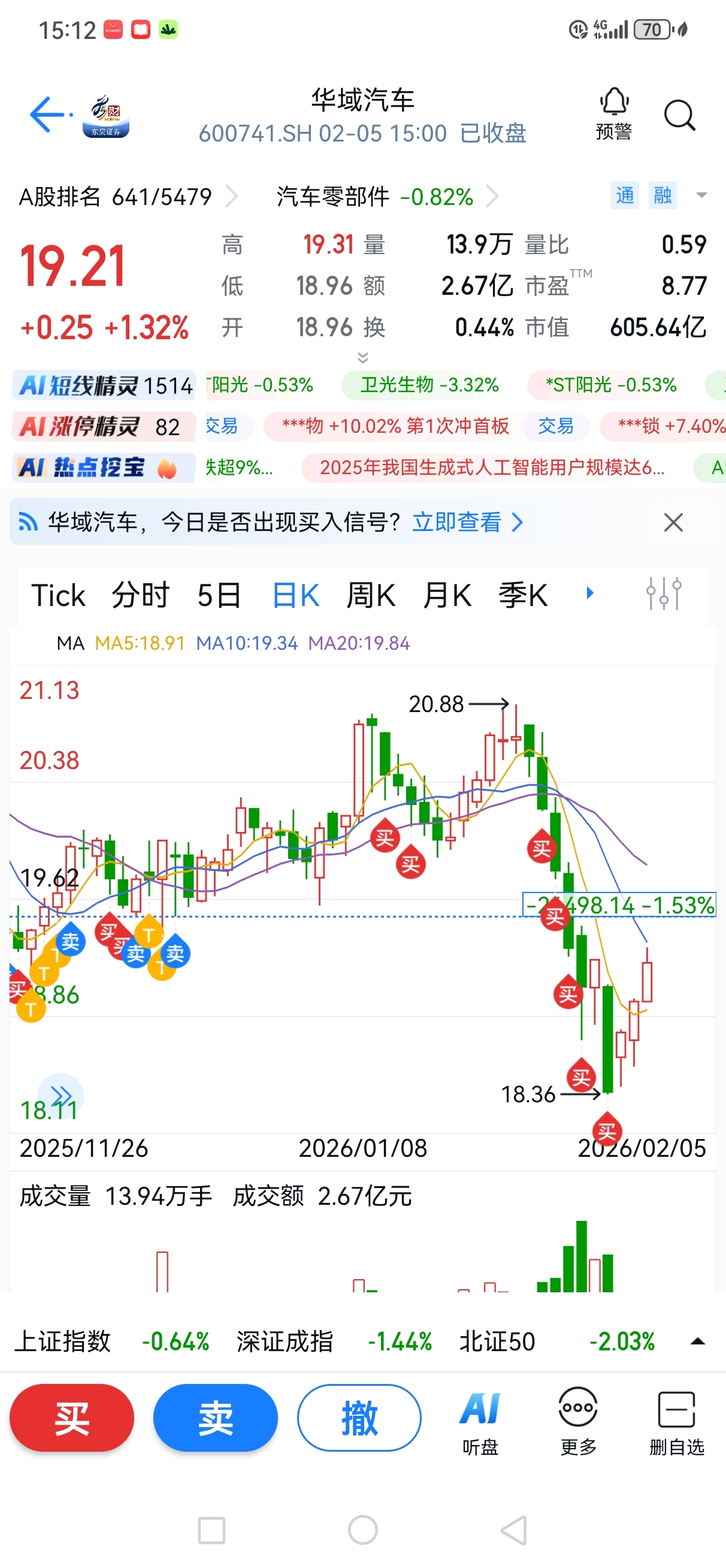 $华域汽车(SH600741)$ 做T只适合牛皮行情,直上直下做T太难。这波华域汽车跌得真及时,潍柴动力的仓位已经移至华域汽车,成本19.5,目前仓位80%,华域汽车和江苏银行各一半,春节前不会再调仓