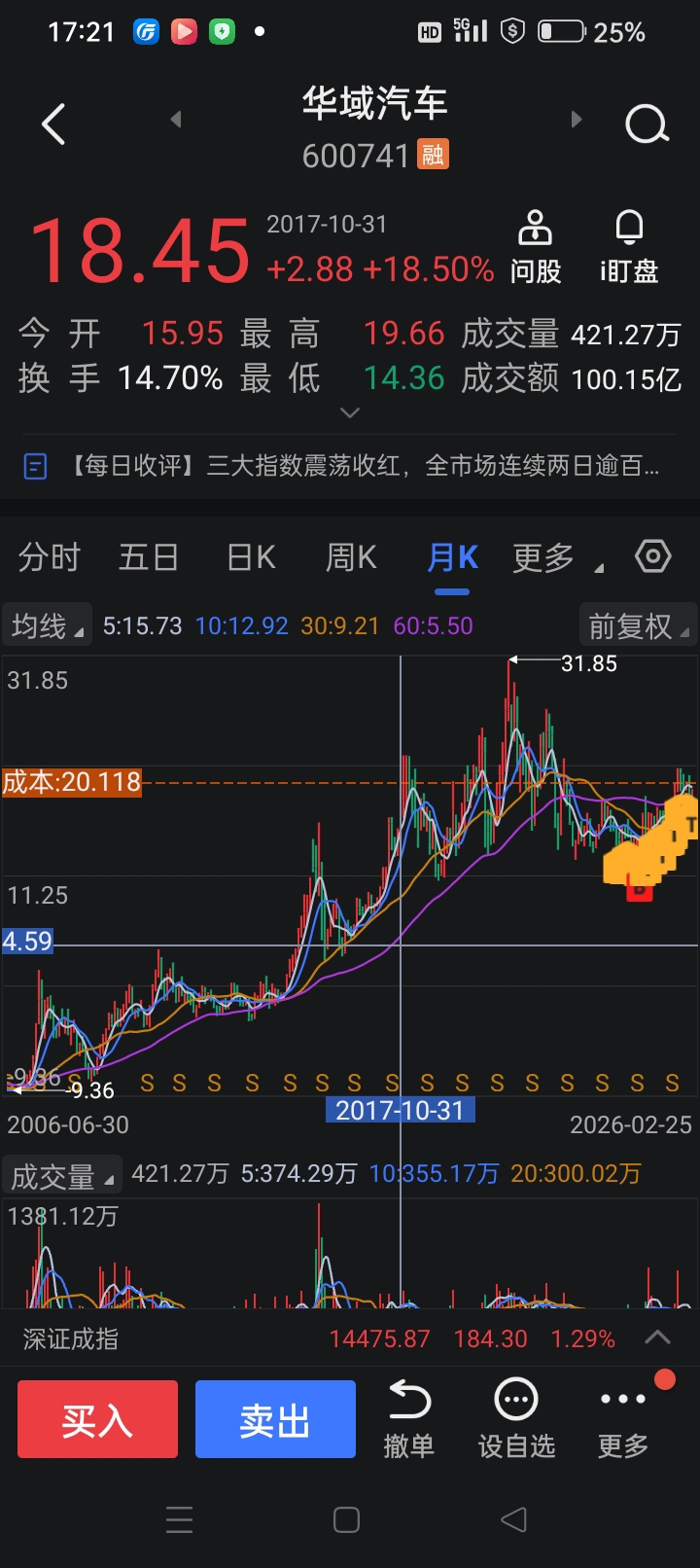 $华域汽车(SH600741)$ 华域这个股票好是蛮好,汽车配件绝对龙头,分红也很高,就是涨幅稍微有点慢,2017年18.45元,现在19.38元,九年累计上涨0.93元。