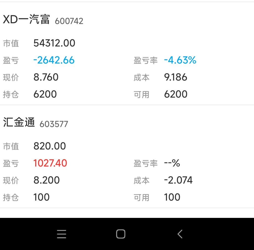 $XD一汽富(SH600742)$ 昨天没看分红,没及时退出来,白本8.9只亏1200,分红下来亏2642来了,分红亏了1400多,的,祝一辈子都不要补分红缺口