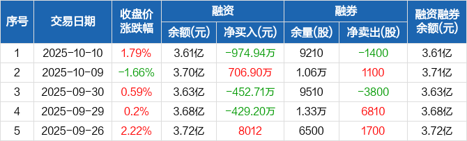 富维股份:融资净偿还974.94万元,融资余额3.61亿元(10-10)