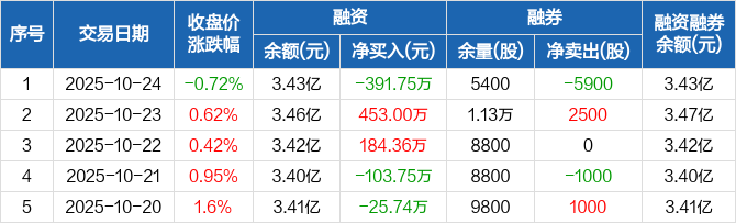 富维股份:融资净偿还391.75万元,融资余额3.43亿元(10-24)