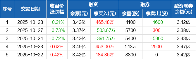 富维股份:融资净买入465.18万元,融资余额3.42亿元(10-28)