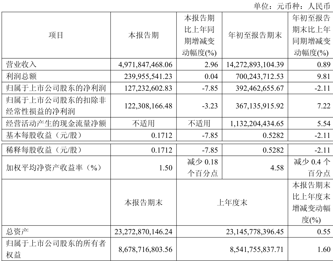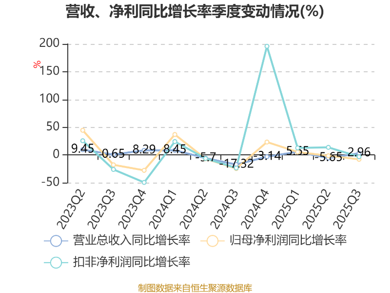 2025年前三季度,公司经营活动现金流净额为11.32亿元,同比增长5.54%;筹资活动现金流净额-5.75亿元,同比减少1.32亿元;投资活动现金流净额-3.1亿元,上年同期为-2.81亿元。