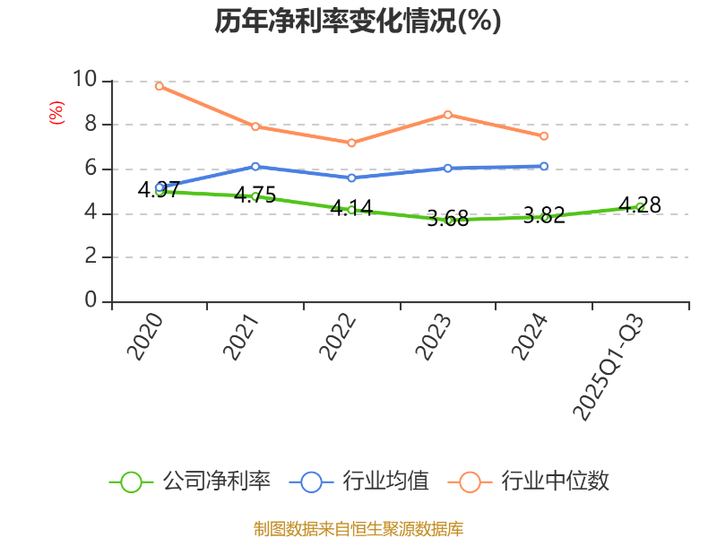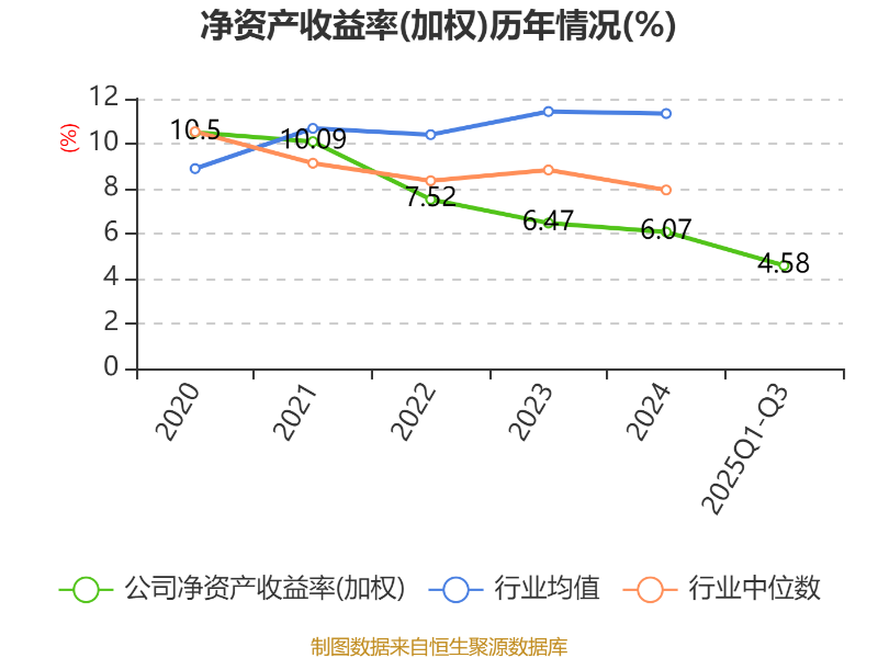 盈利能力方面, 2025年前三季度公司加权平均净资产收益率为4.58%,同比下降0.4个百分点。公司2025年前三季度投入资本回报率为5.06%,较上年同期上升0.23个百分点。