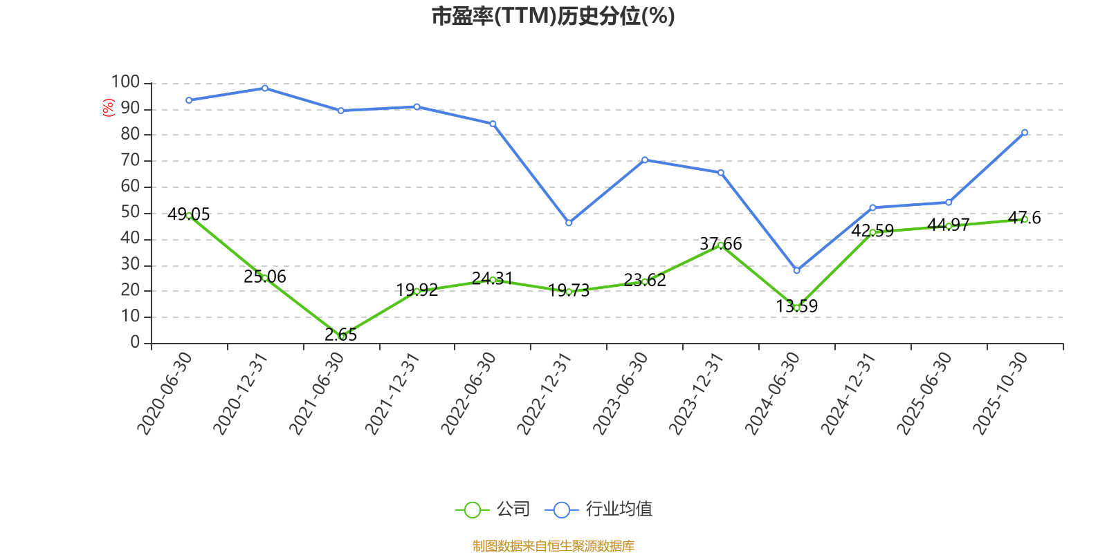 市盈率、市净率为负时,不显示当期分位数,会导致折线图中断。