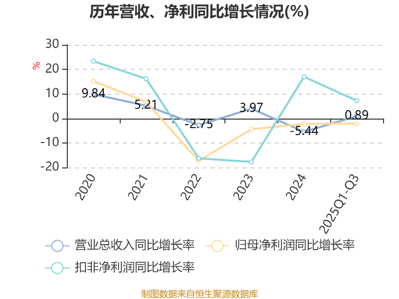 中证智能财讯富维股份(600742)10月31日披露2025年第三季度报告。前三季度公司实现营业总收入142.73亿元,同比增长0.89%;归母净利润3.92亿元,同比下降2.11%;扣非净利润3.67亿元,同比增长7.22%;经营活动产生的现金流量净额为11.32亿元,同比增长5.54%;报告期内,富维股份基本每股收益为0.5282元,加权平均净资产收益率为4.58%。