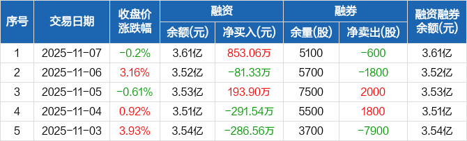 富维股份:融资净买入853.06万元,融资余额3.61亿元(11-07)