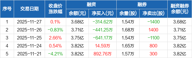 富维股份:连续3日融资净偿还累计1397.04万元(11-27)