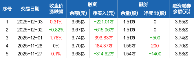 富维股份:融资净偿还221.01万元,融资余额3.65亿元(12-03)
