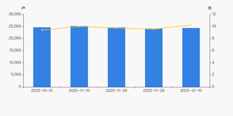2025年10月31日至今,公司股东户数有所下降,区间跌幅为1.13%。2025年10月31日至2025年12月10日区间股价上涨8.92%。