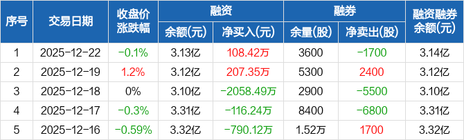 富维股份:融资净买入108.42万元,融资余额3.13亿元(12-22)
