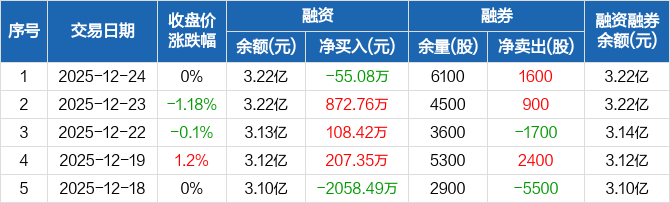 富维股份:融资净偿还55.08万元,融资余额3.22亿元(12-24)