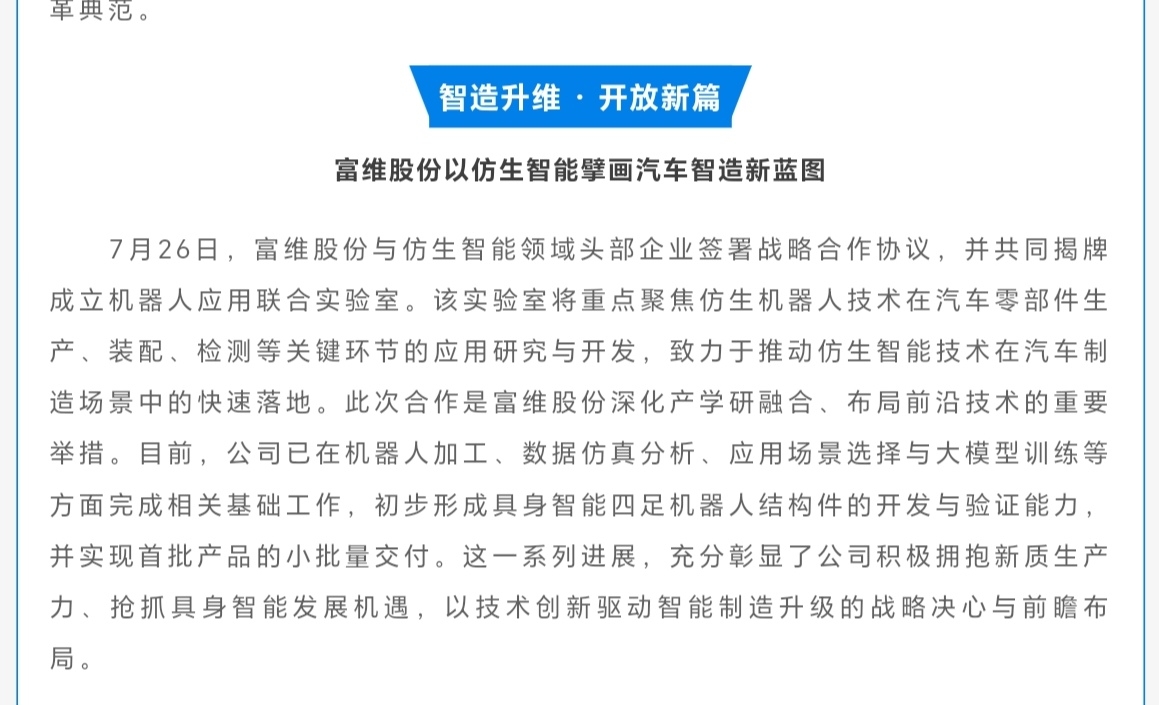 富维股份生产机器人零件,同样的宁波华翔涨上天。