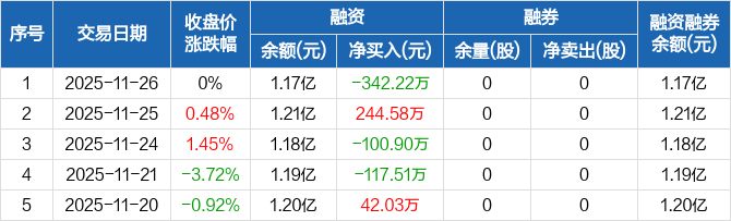 华远控股:融资净偿还342.22万元,融资余额1.17亿元(11-26)