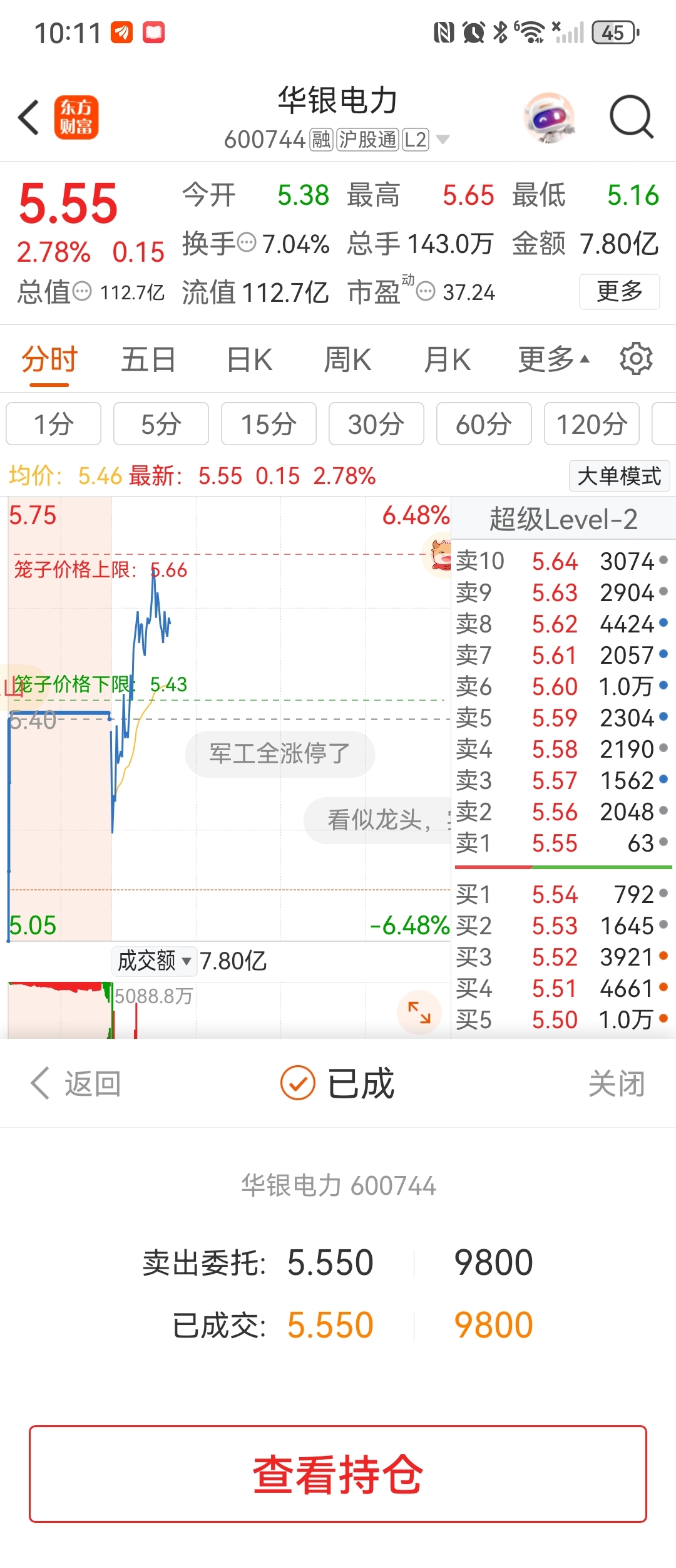 $华银电力(SH600744)$ 吃8个点知足了,位置我觉得有点高了,不贪了