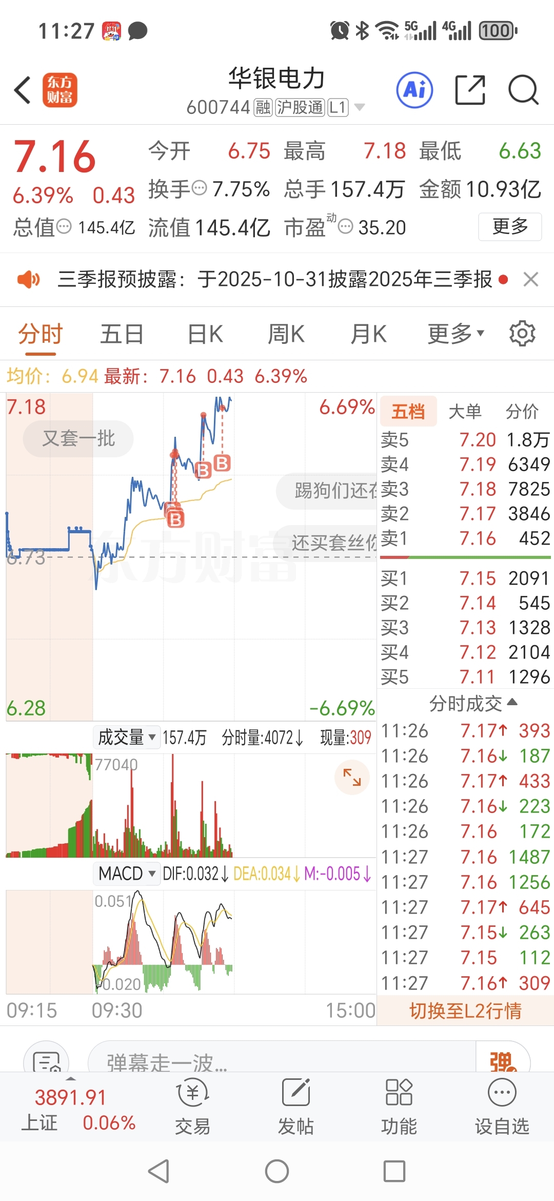 $华银电力(SH600744)$ 这是吸筹趋势,大家加油啊