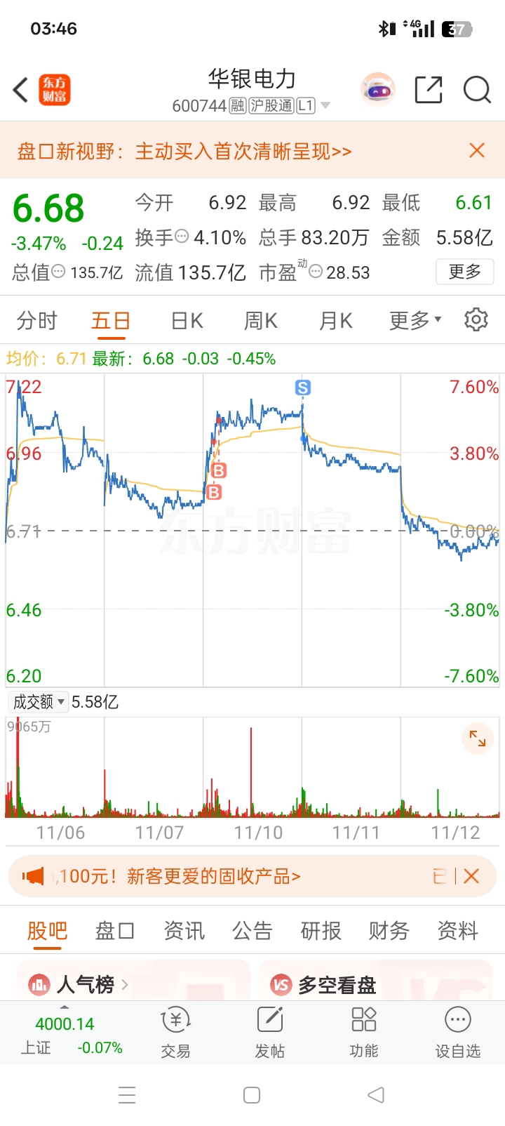 $华银电力(SH600744)$ 我手指一算,今天肯定拉了