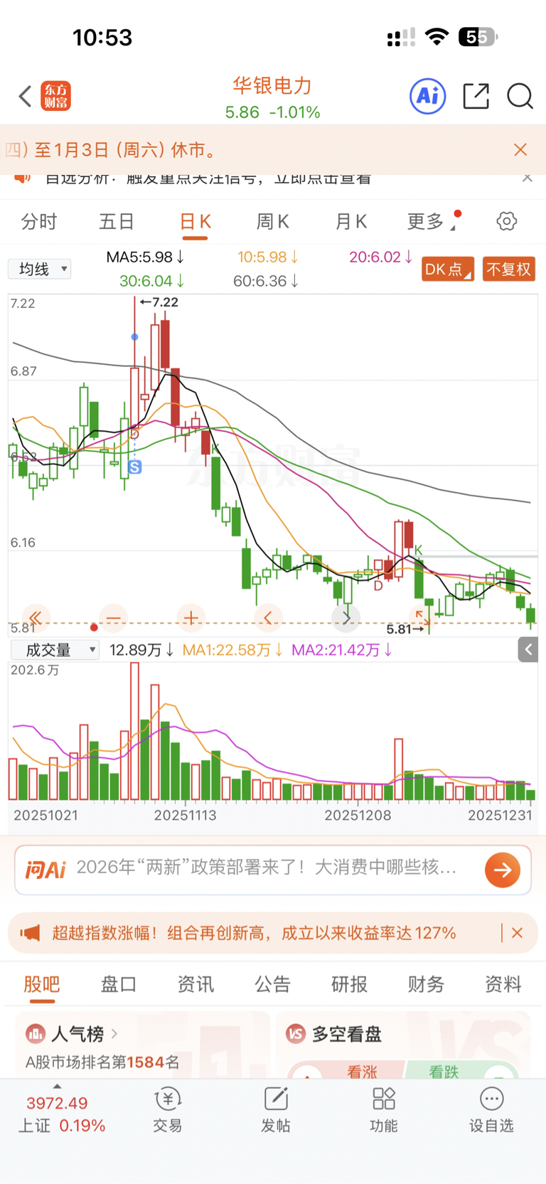 $华银电力(SH600744)$ 还好当然忍住了