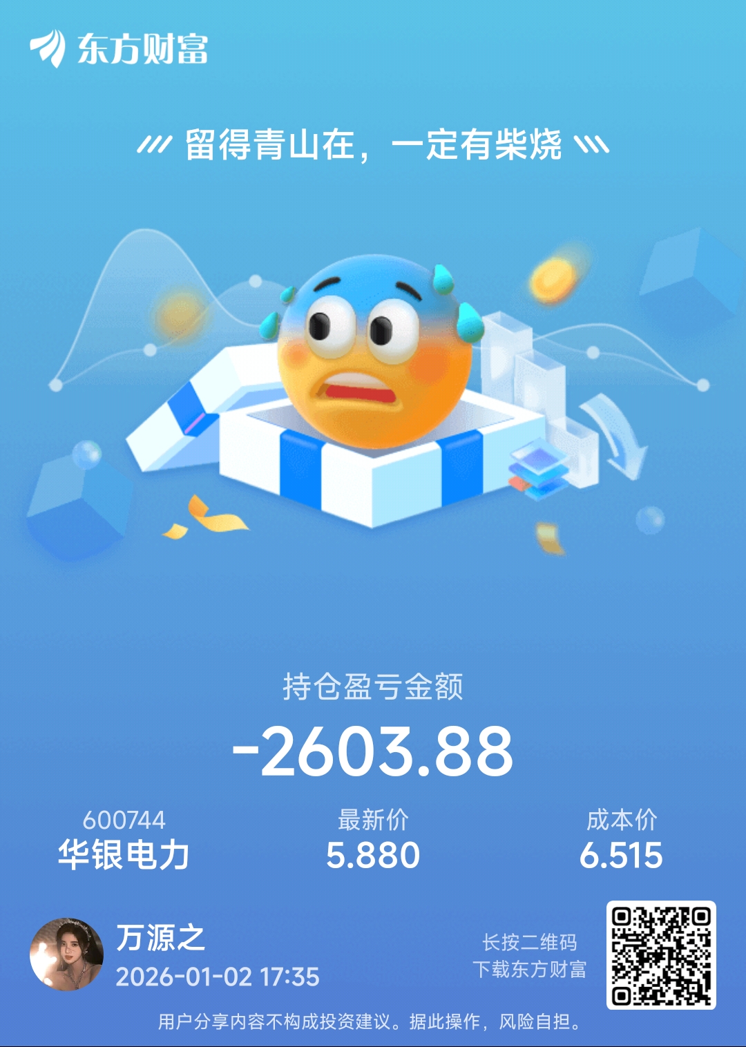 温馨提示: 1.根据《证券法》规定,禁止编造、传播虚假信息或者误导性信息,扰乱证券市场;2.用户在本社区发表的所有资料、言论等仅代表个人观点,与本网站立场无关,不对您构成任何投资建议。用户应基于自己的独立判断,自行决定证券投资并承担相应风险。《东方财富社区管理规定》