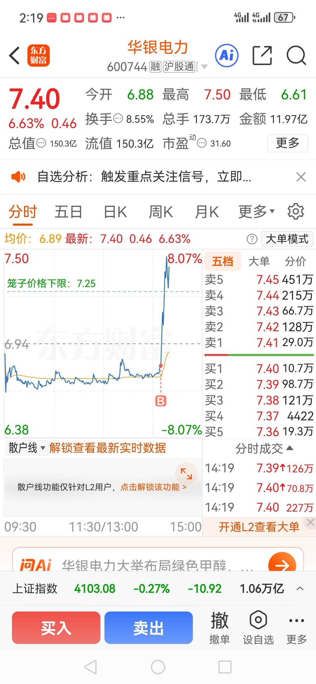 $华银电力(SH600744)$ 一看到乐山起飞了,马上就来买华银电力,时间赶的刚刚好