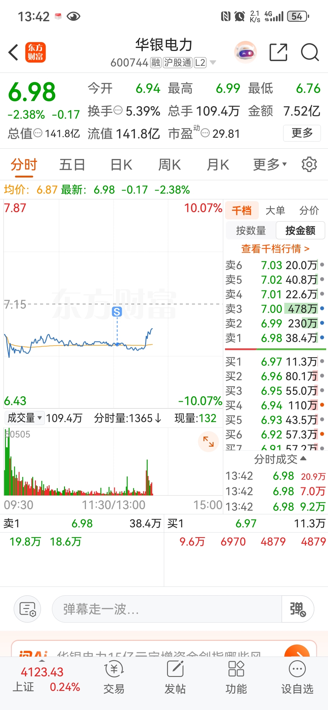 $华银电力(SH600744)$ 又卖飞,等会拉红了