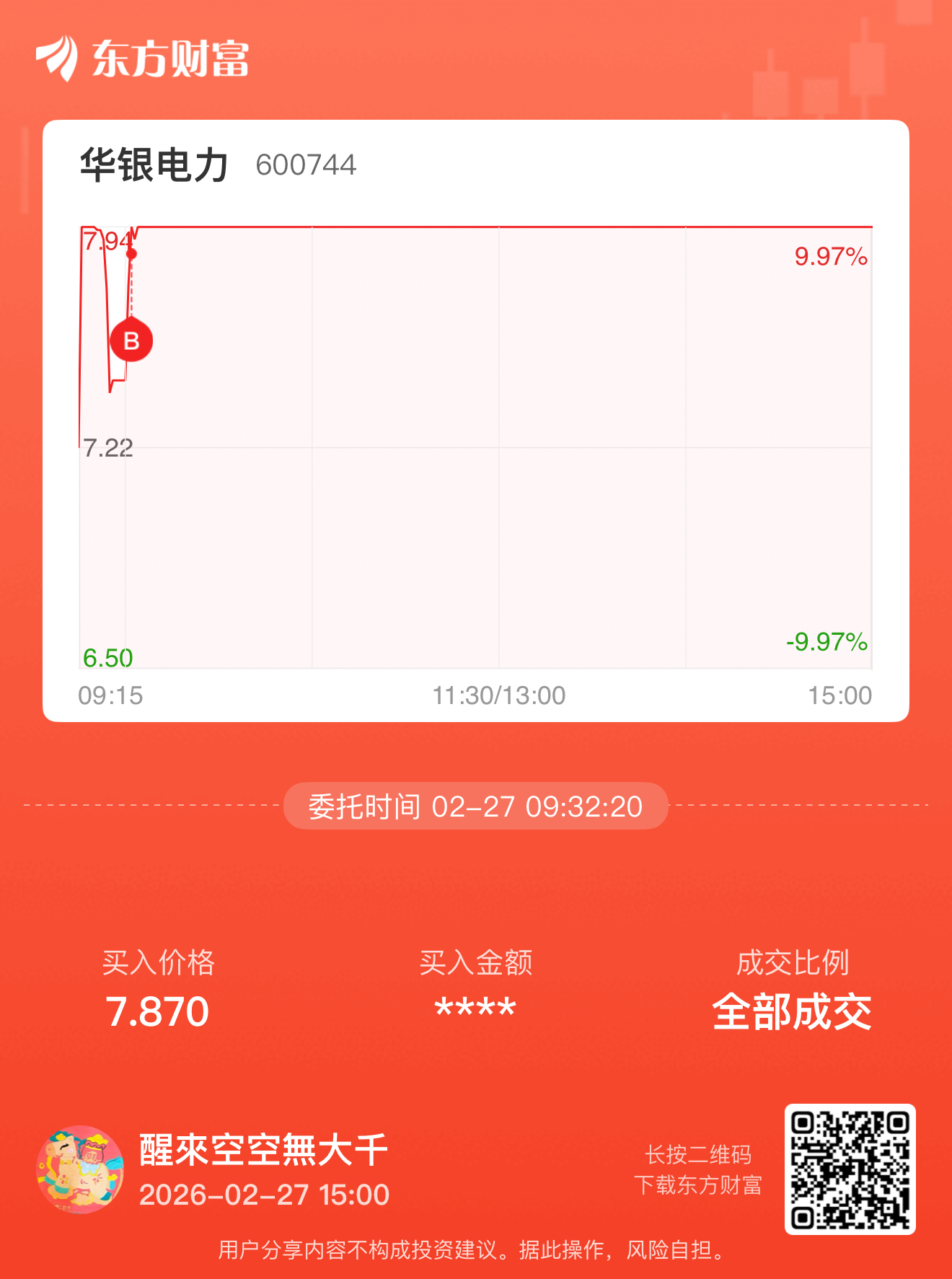 $华银电力(SH600744)$ 炒股就是如此简单。