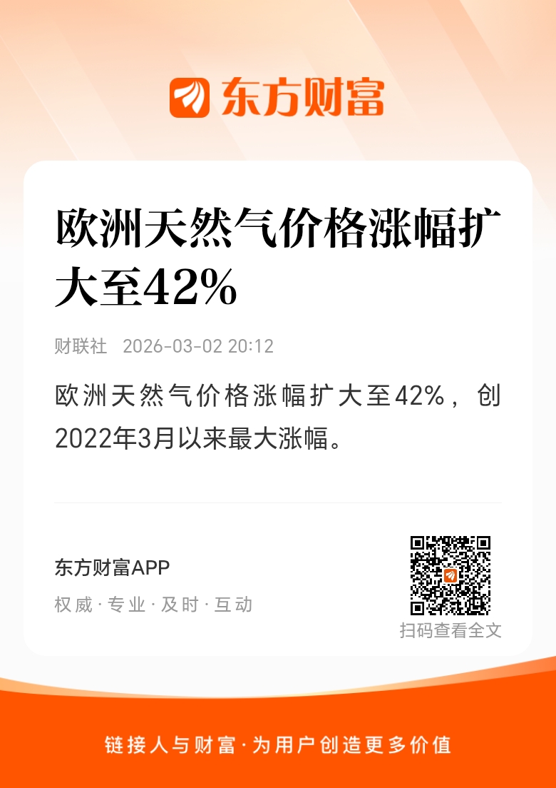 由于美国和以色列对伊朗发起军事打击引发中东地缘政治局势显著升级,欧洲天然气价格2日开盘后上涨超过20%,随后进一步拉升,涨幅一度扩大至50%,创2022年3月以来最大涨幅。