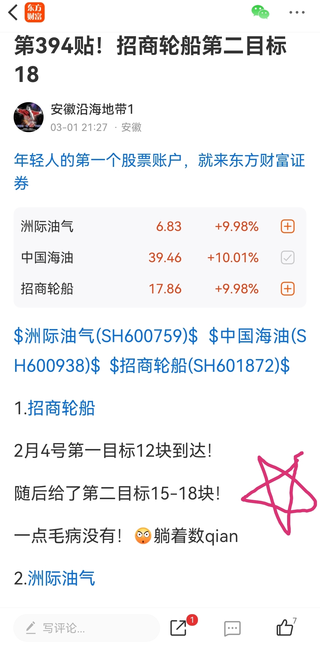 $中国石油(SH601857)$ $中国海油(SH600938)$ $招商轮船(SH601872)$