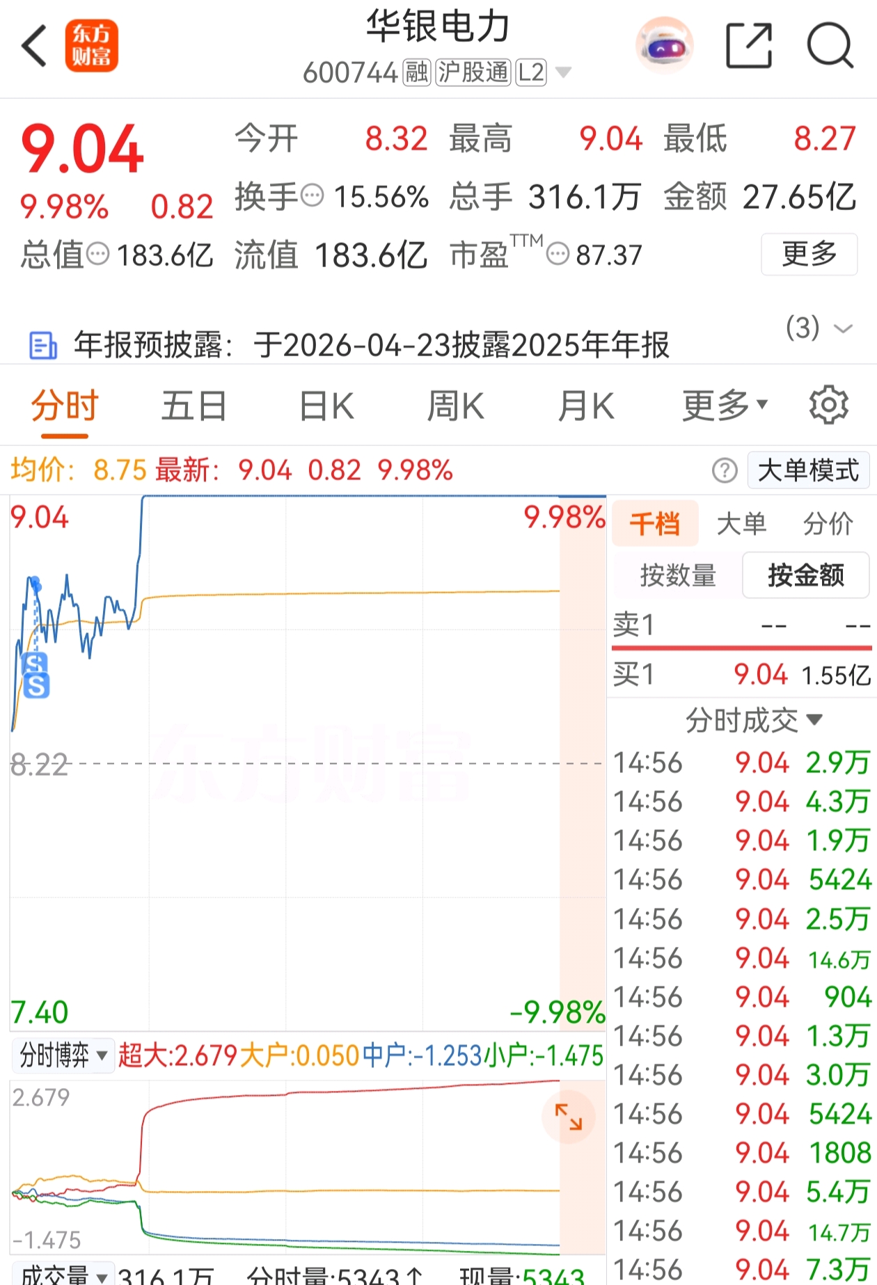 $华银电力(SH600744)$ 主力太坏了,今天第一波非要卡在8.88,如果不是这个数字真的不会走,最近看到对子怕了(双杰、亚盛等等),电力(包括智能电网、特高压)明天应该是强分歧,虽然走了但还是看好华银,转战商业航天+核电了,留下的兄弟们发财。
