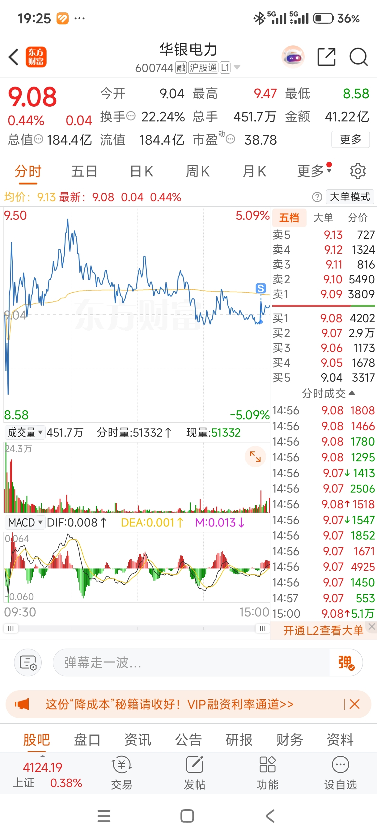 $华银电力(SH600744)$ 赚了30个点,先走了,不然周末过得提心吊胆