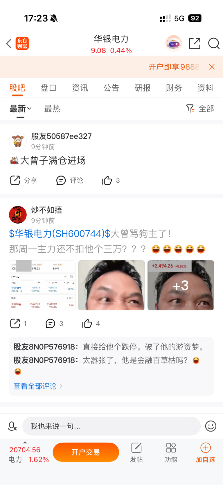 $华银电力(SH600744)$ 所谓大增子满仓三十万进场系某网友用其他网友贴的仓位图加上大增子的脸部截图P图造谣,此贴已被举报删除,请大家不信谣不传谣,别来了个大增子像亲die来了一样欢庆,炒股要有脑子