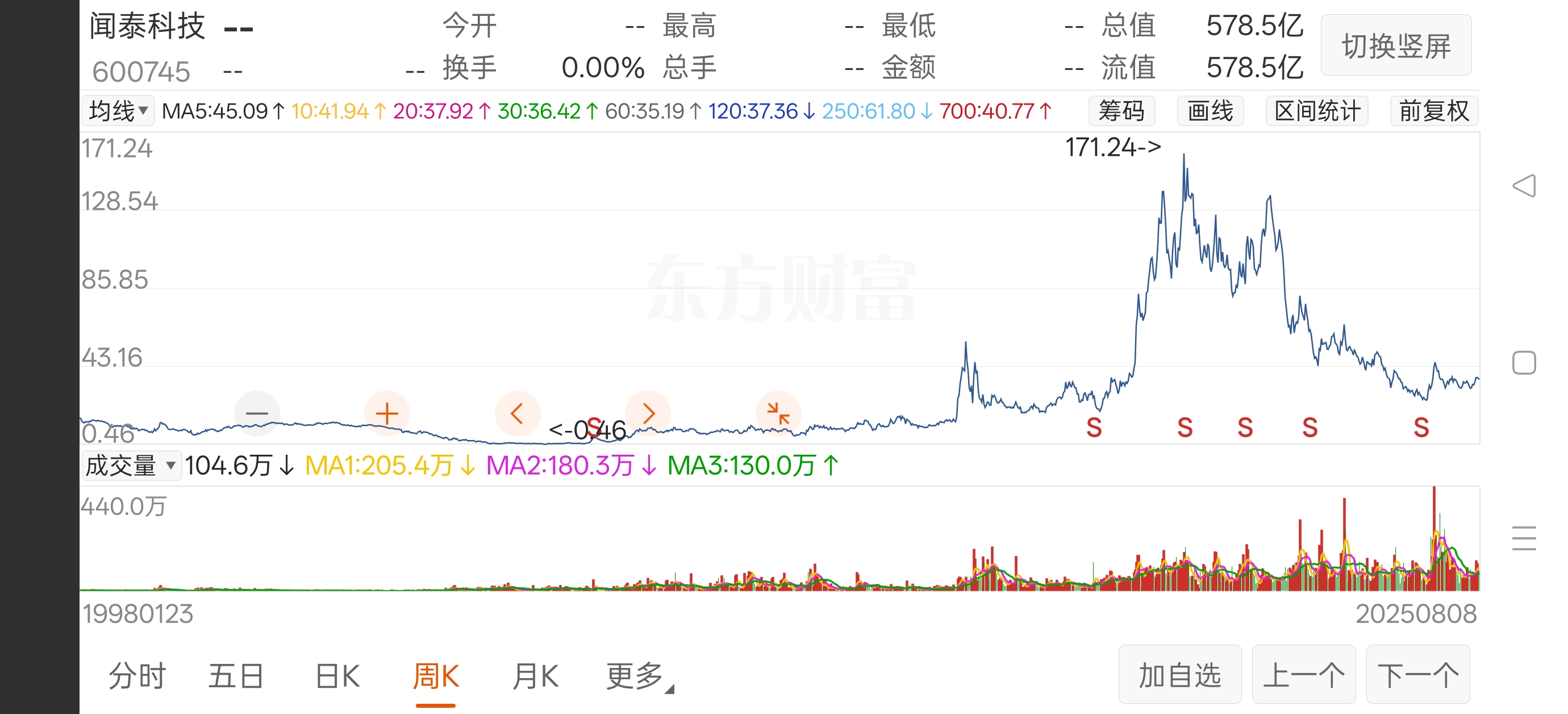 $闻泰科技(SH600745)$ 竟然还是历史低位