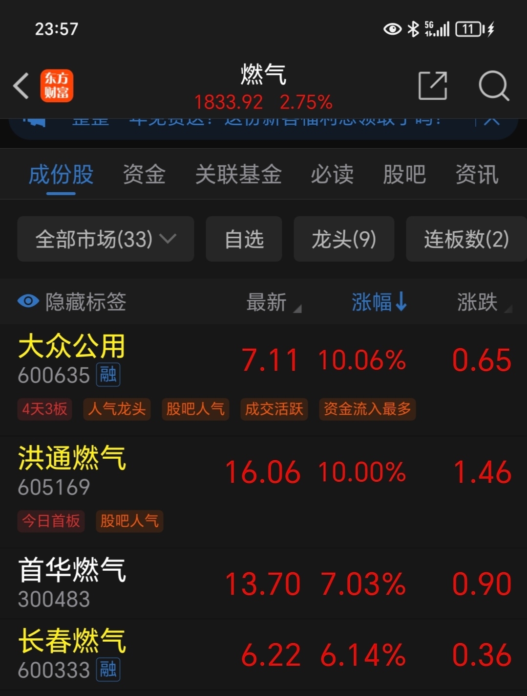 北方天气渐冷,开始供暖,关税大战之下,周一也只有公用事业的燃气板块具有赚钱效应。