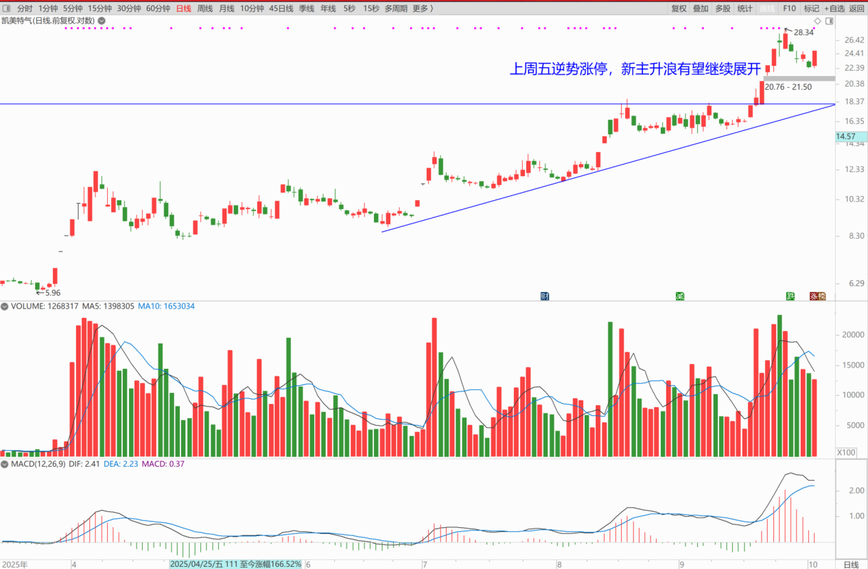 $凯美特气(SZ002549)$:(光刻气+电子特气+芯片+中报扭亏)基本面:公司主营高纯二氧化碳、氢气、燃料气及电子特种气体,在二氧化碳行业保持龙头地位,并围绕世界500强石化企业布局,持续扩大芯片半导体、航天、医疗等高端领域电子特气产能。公司光刻气产品已获ASML子公司Cymer认证,电子特气通过多家国际头部企业认证,助力拓展市场。业绩方面,公司2025年上半年营收3.10亿元、同比增长10.52%,归母净李润5584.61万元,同比扭亏为盈。