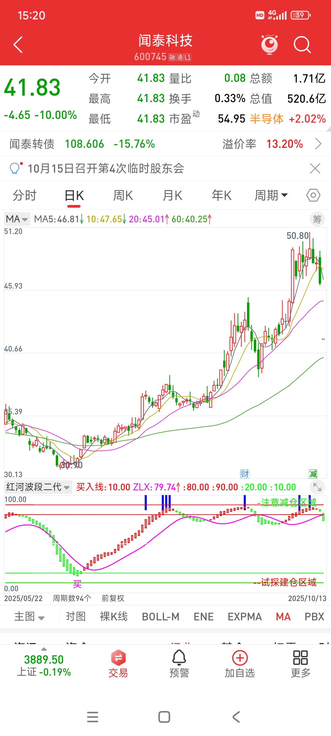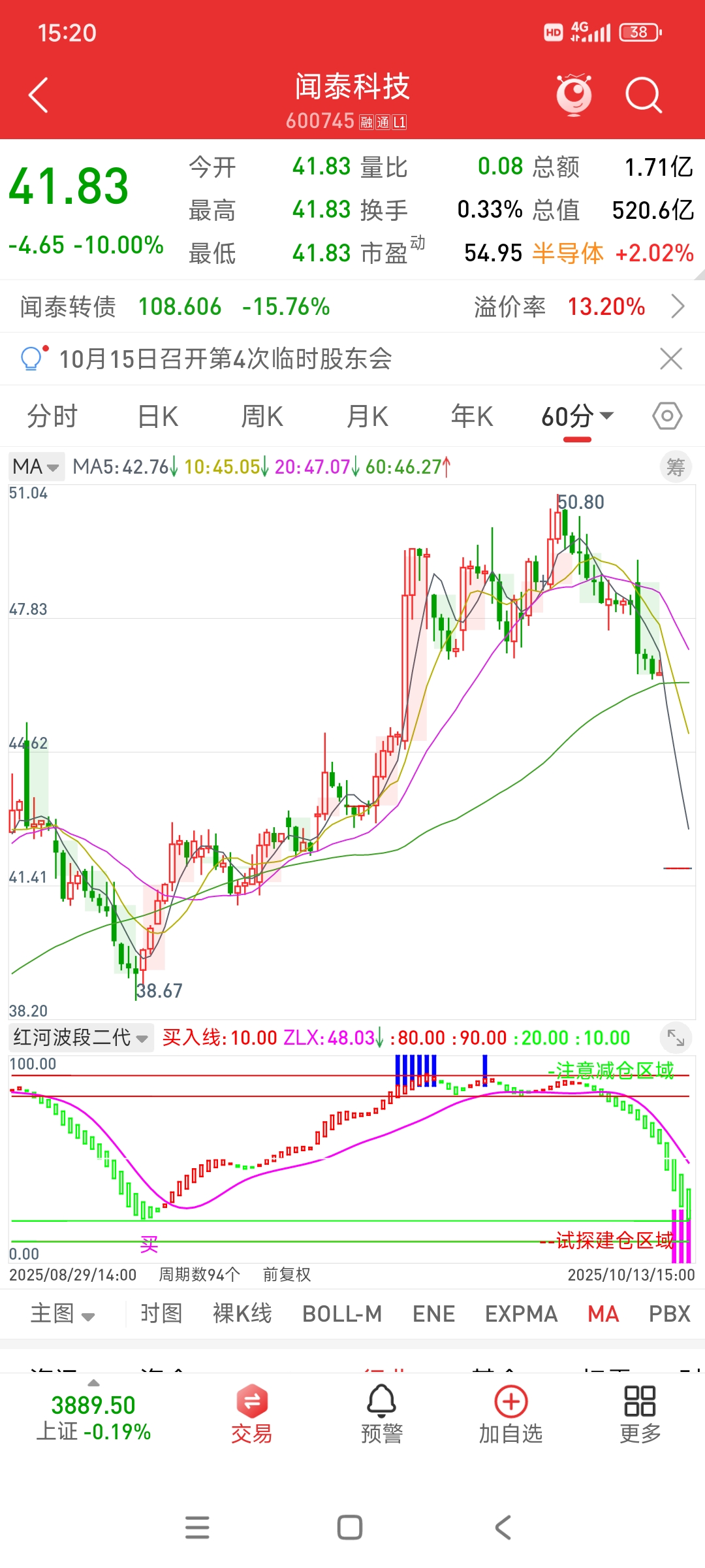 上周五就已经和你们说了闻泰科技看好,因为不管日线还是60分钟线都是在顶部出现了红