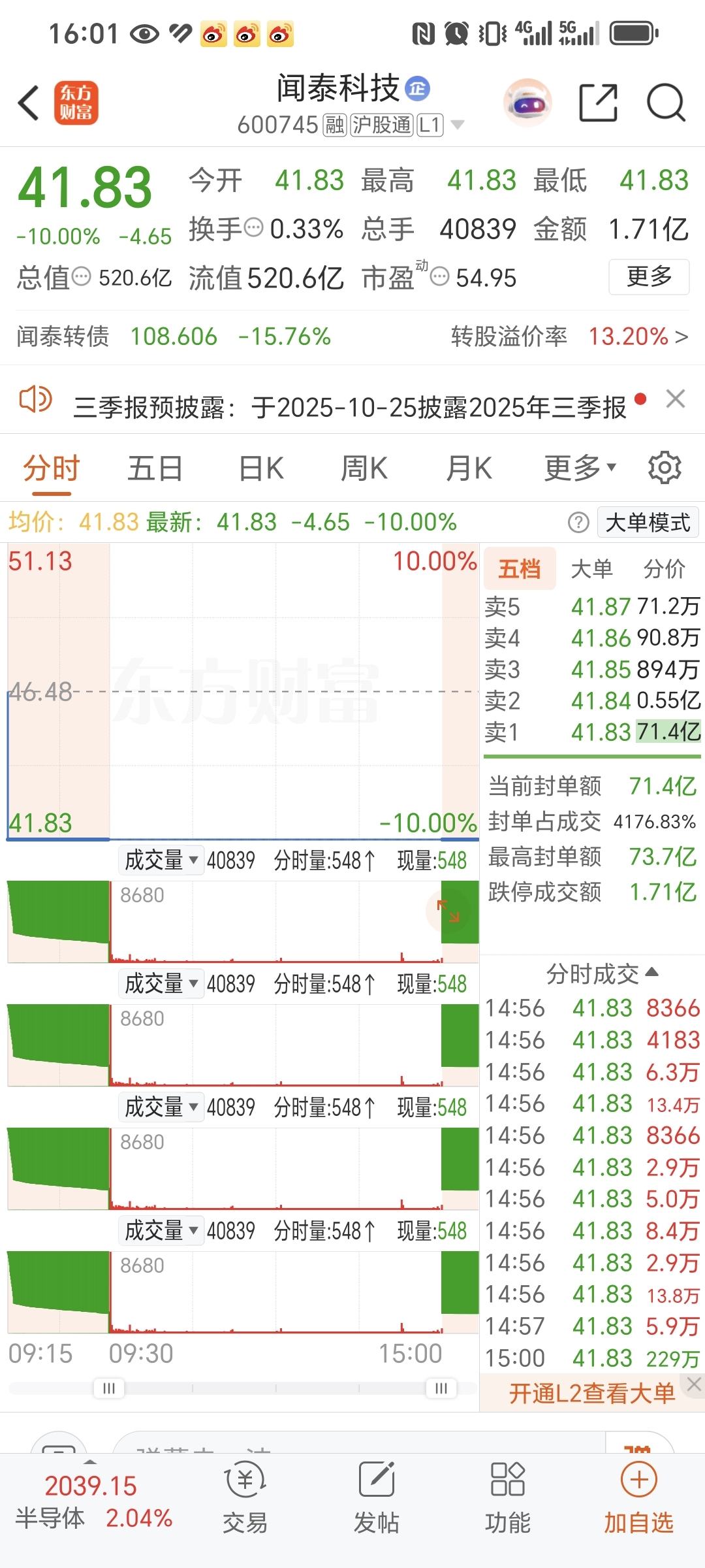$闻泰科技(SH600745)$ 七十多个亿的封单,得几个板才能开吧,