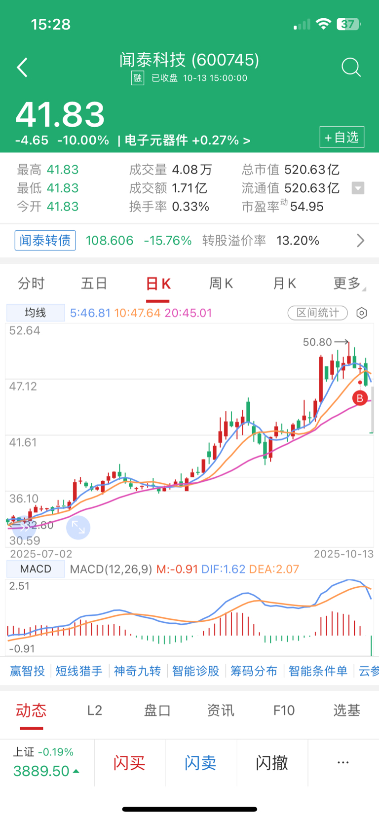 $闻泰科技(SH600745)$ 我有个朋友上个星期买了这个票,他想问问大家还有几个板
