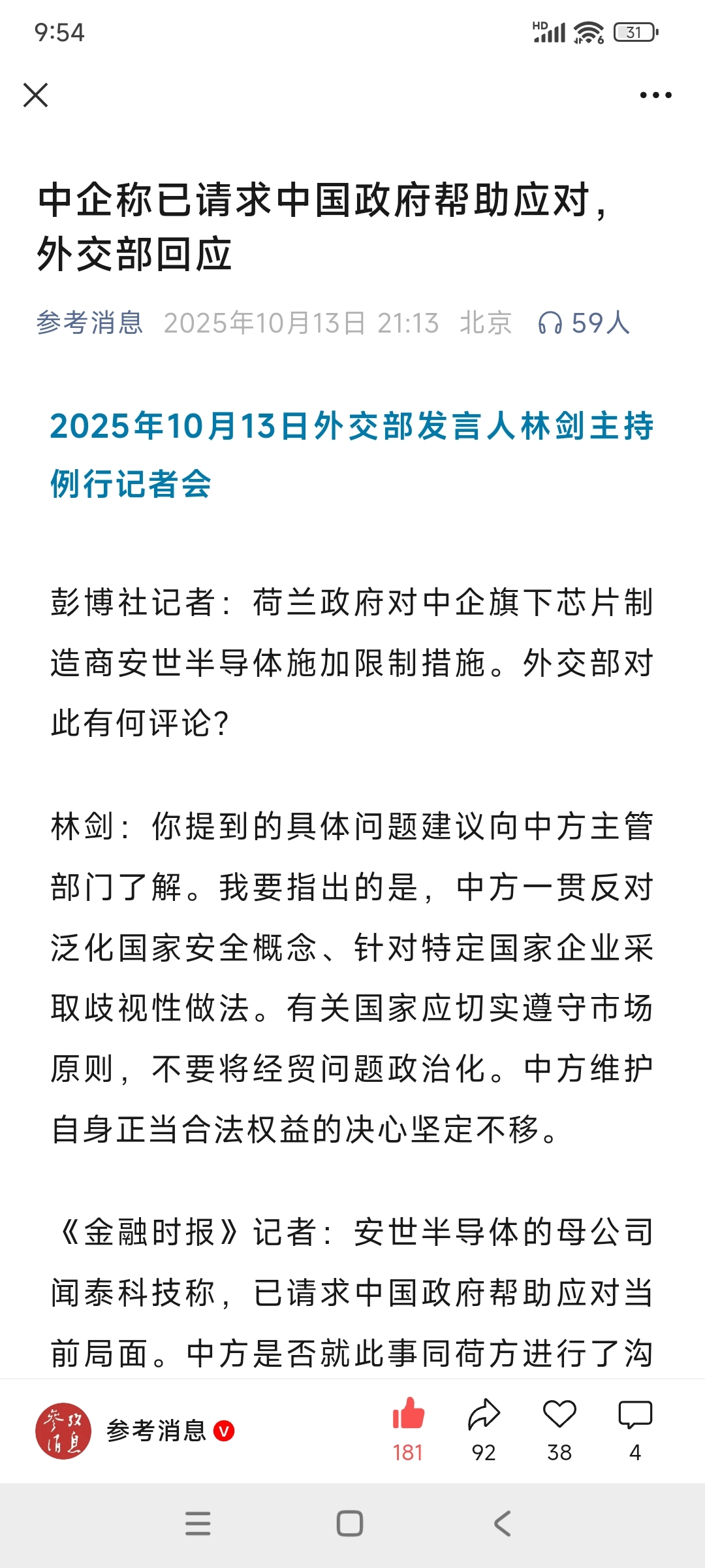 已经上了官媒,事态升级上升到国家层面,希望国家出手保护中企海外资产,今天荷兰可以