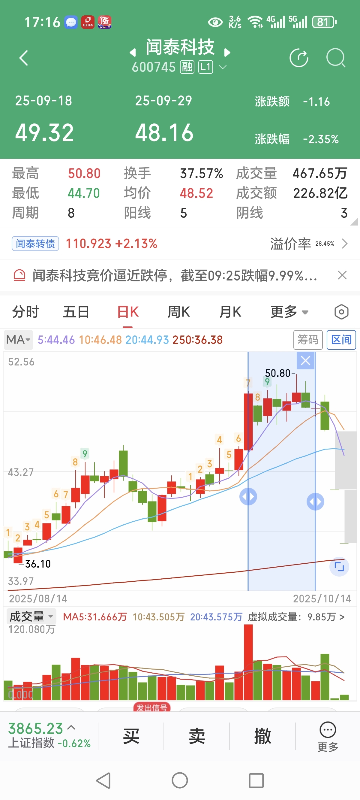 $闻泰科技(SH600745)$ 从区间统计来看,不到两周时间,成交两百个亿,到底有多少机构(尤其是国资背景的机构)高位逃顶?如果真的逃了,那就说明这个事不好搞,短期也不能太乐观,三十以下,应该能到了,如果国家不给撑腰,年底前就别想解套了,当然短线高手可以搏一把,小散就算了。