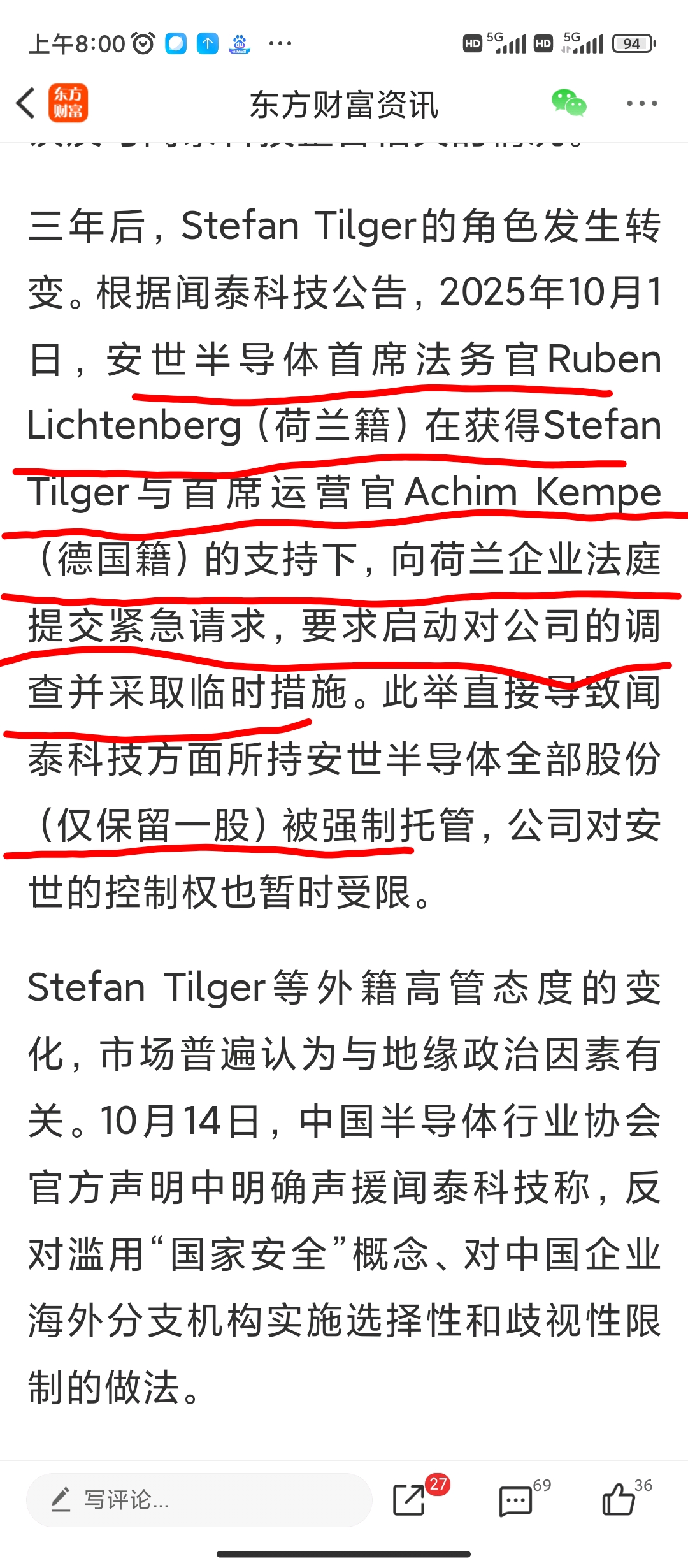$闻泰科技(SH600745)$ 完全是里应外合!!!这些荷兰的高管应该是早有预谋的,我们却睡在美梦中,现在才在现实中惊醒过来,一切都太迟了