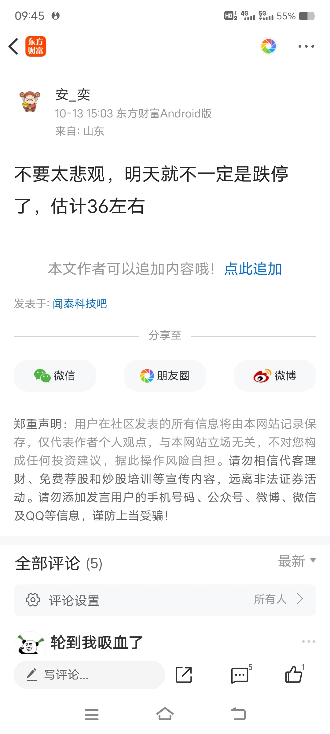 温馨提示: 1.根据《证券法》规定,禁止编造、传播虚假信息或者误导性信息,扰乱证券市场;2.用户在本社区发表的所有资料、言论等仅代表个人观点,与本网站立场无关,不对您构成任何投资建议。用户应基于自己的独立判断,自行决定证券投资并承担相应风险。《东方财富社区管理规定》
