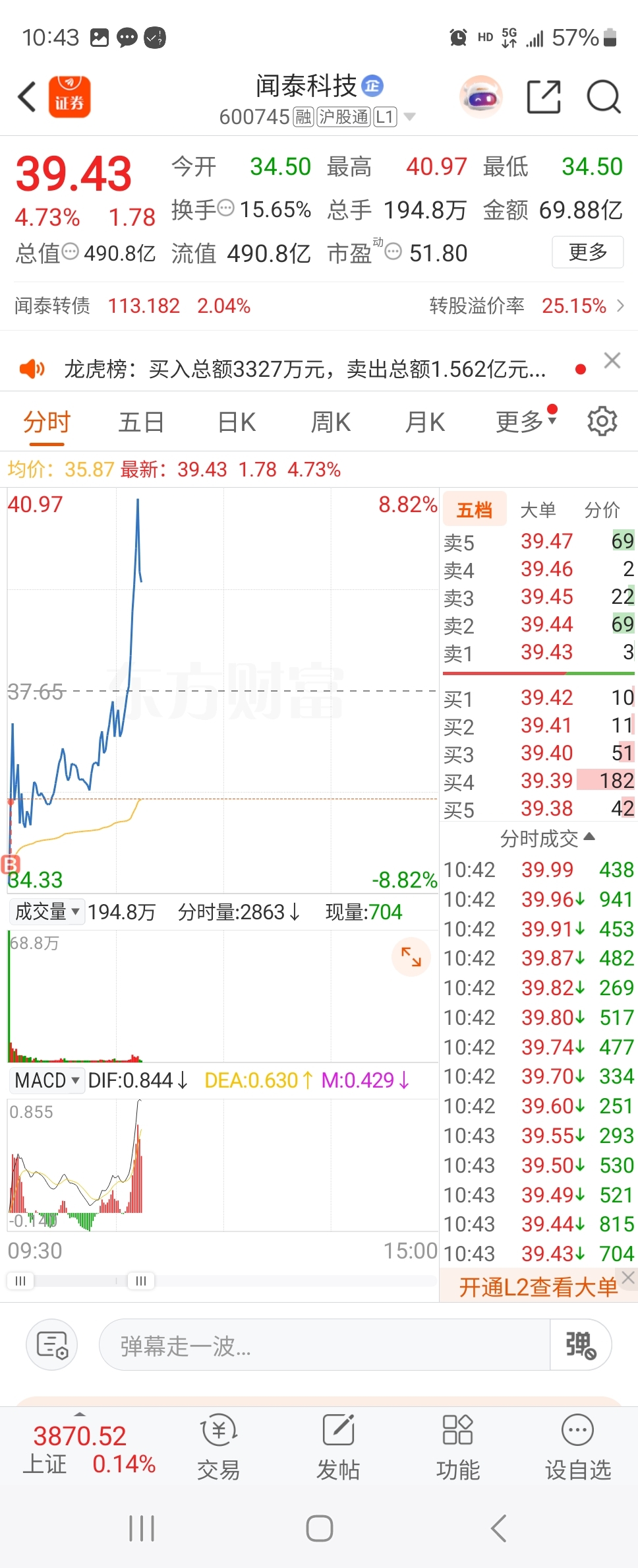 $闻泰科技(SH600745)$ 早上b了三笔就进去这一笔