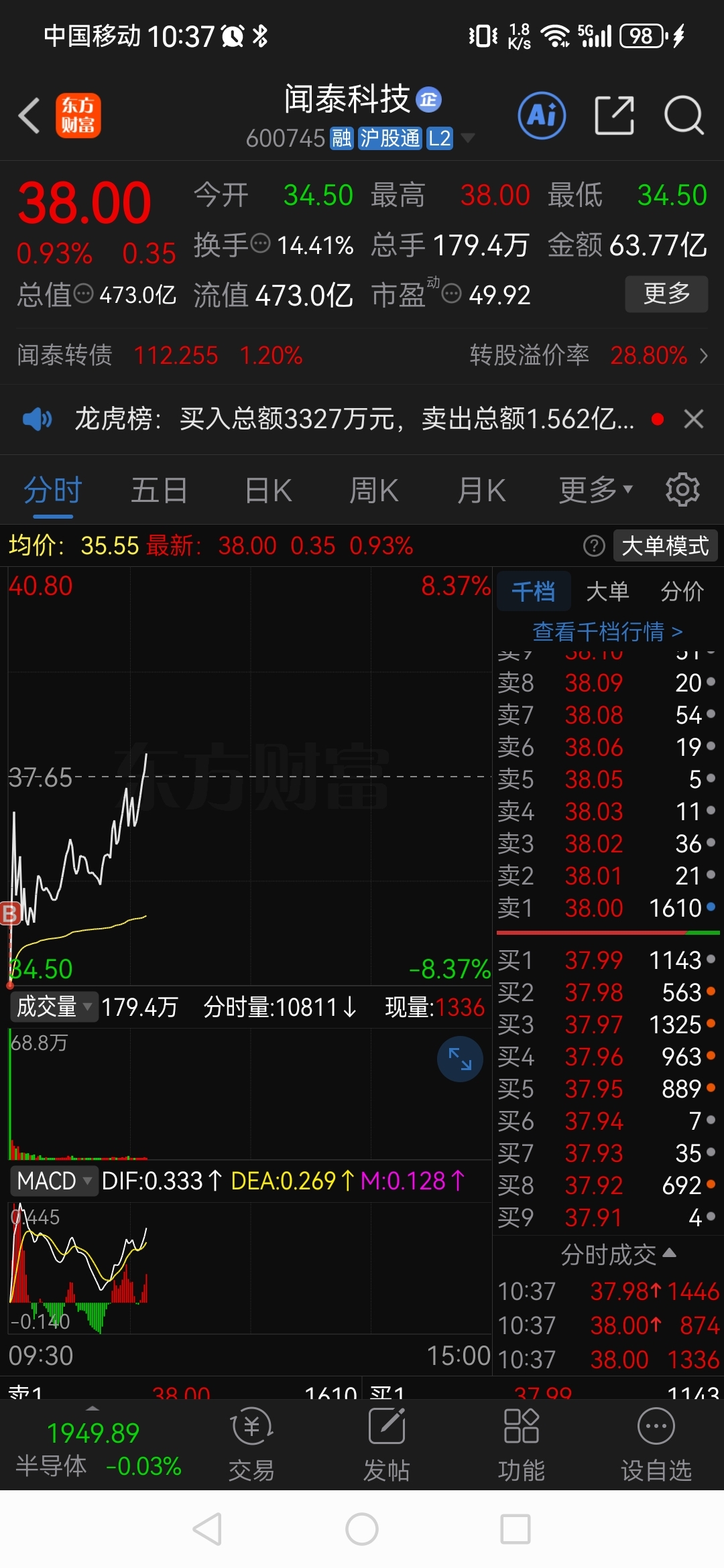 $闻泰科技(SH600745)$ 兄弟姐妹们,我来接盘了