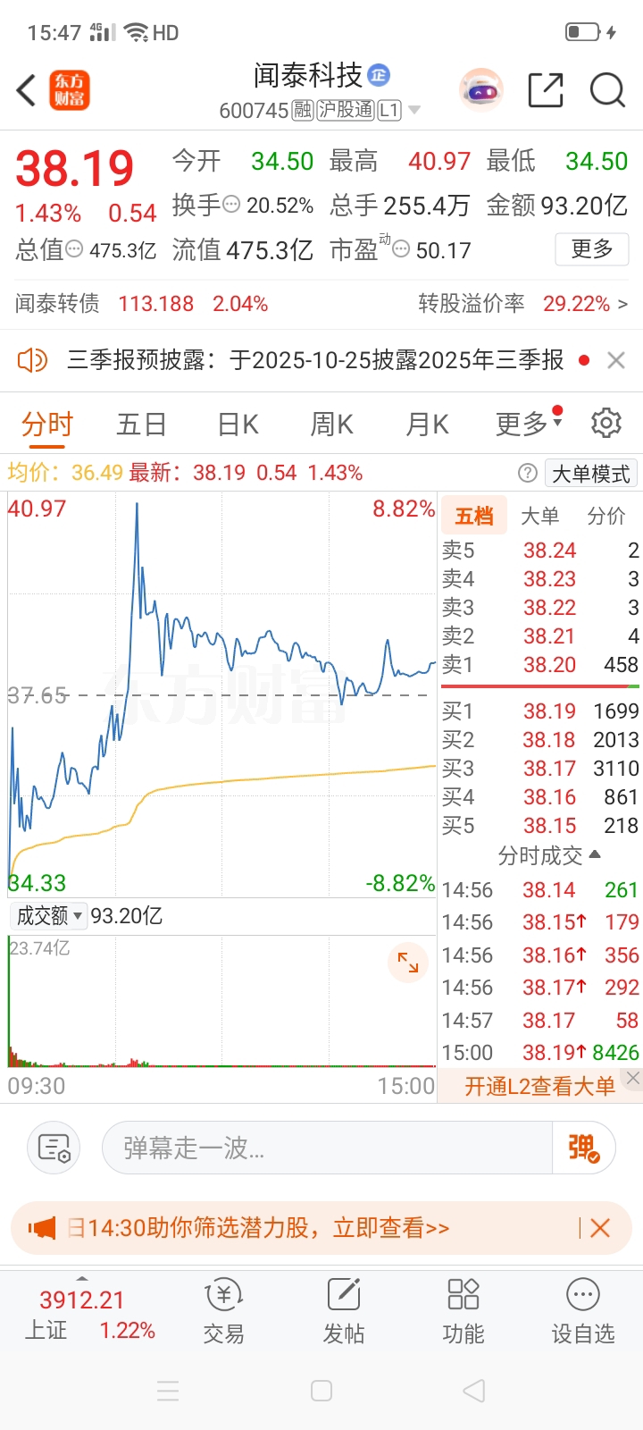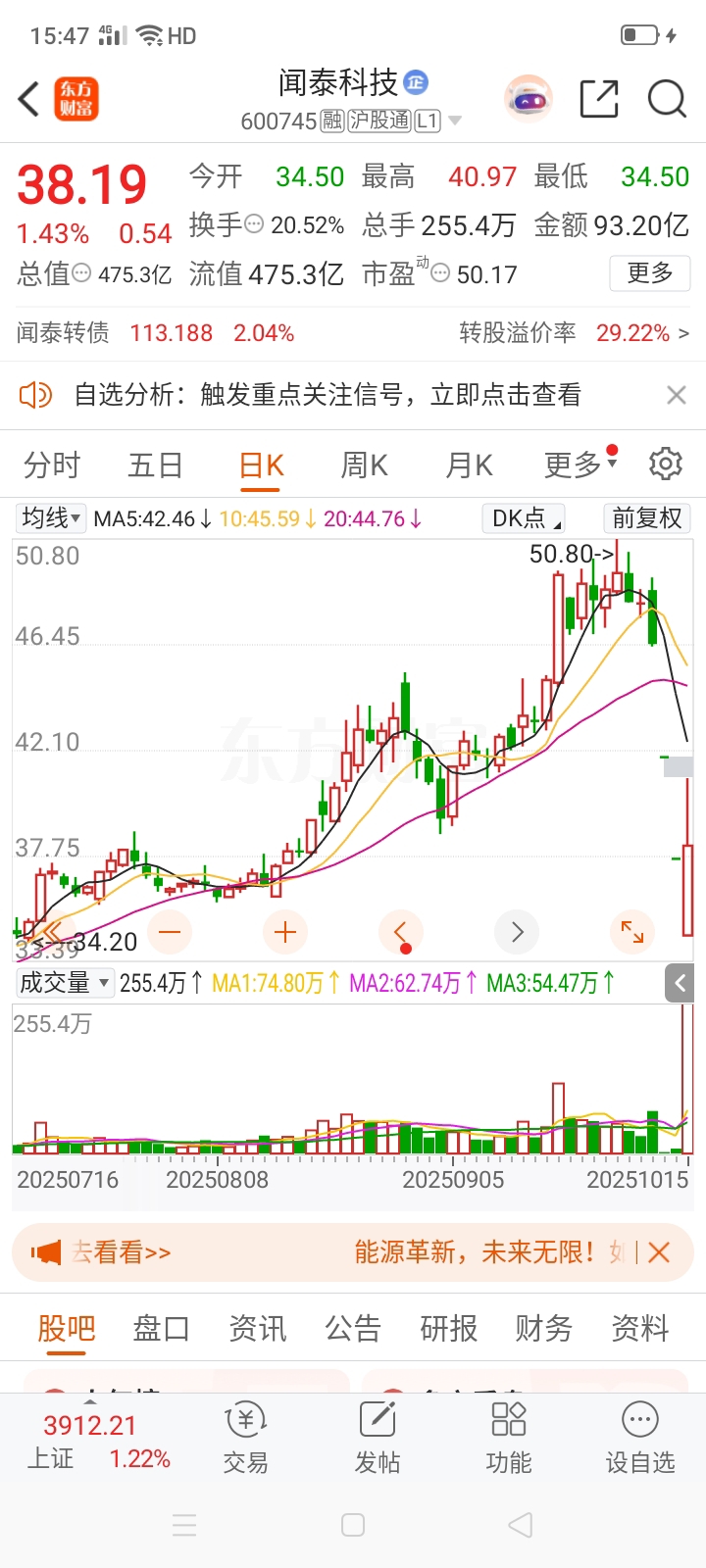 没有好消息的话,闻泰科技明天就是低开低走,像海南华铁昨天的走势。