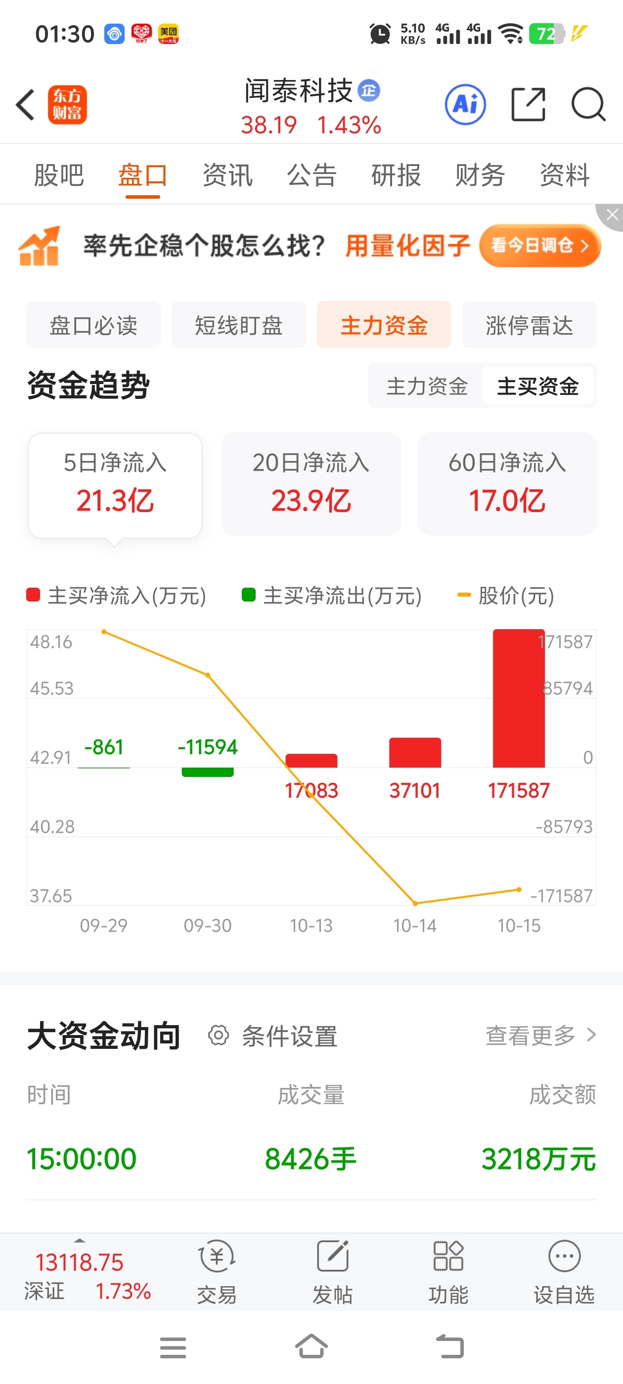 主买资金连续三天流入22个亿,若继续有资金流入就原地不动,反之就割肉离场观望,入