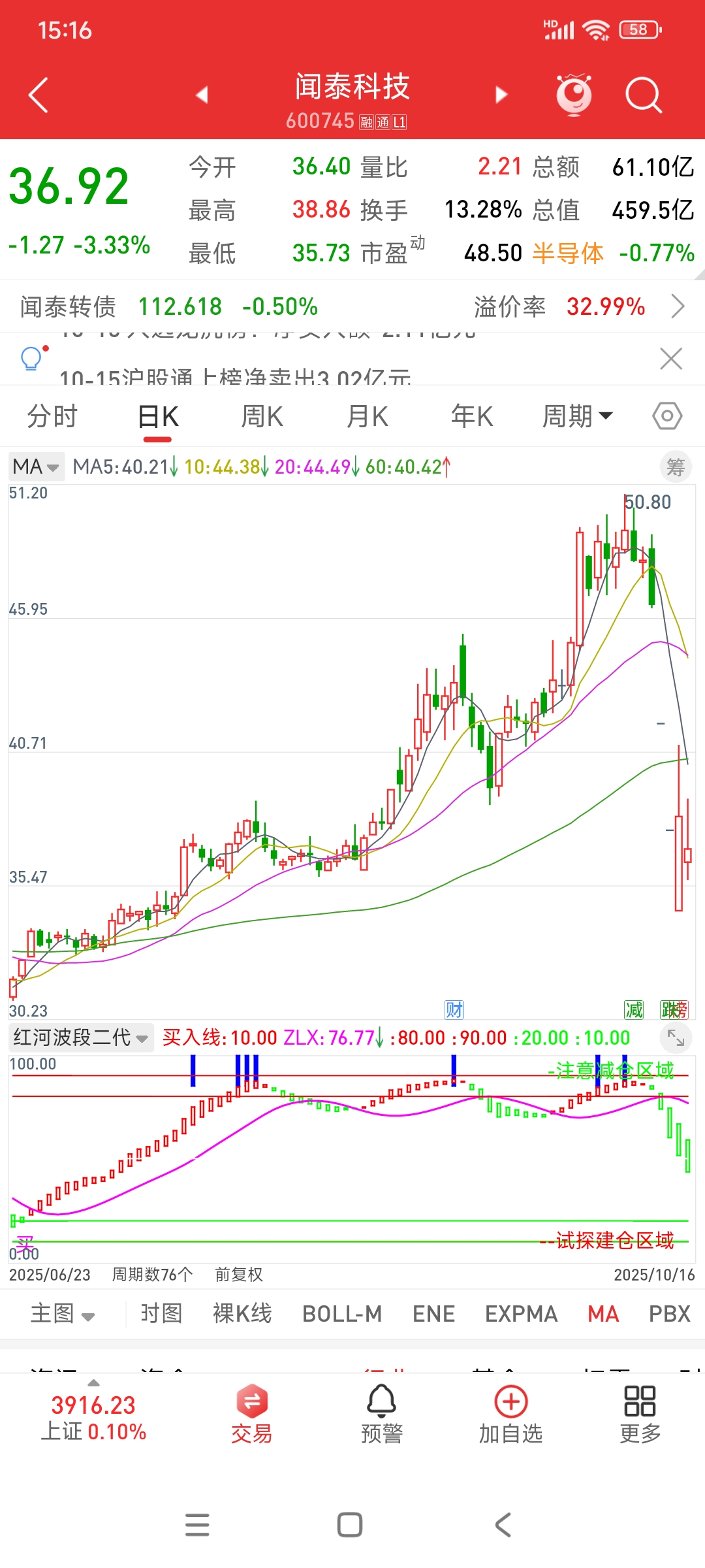 $闻泰科技(SH600745)$ 这个位置还不能入场,因为绿柱还在延续,上周的时候就和你们说了,绿柱延续的票趋势就是,毕竟绿柱不停,下行不止,绿柱拉长,崩溃不止,这里继续观望,耐心等待,等到绿柱转红柱的时候再入场。