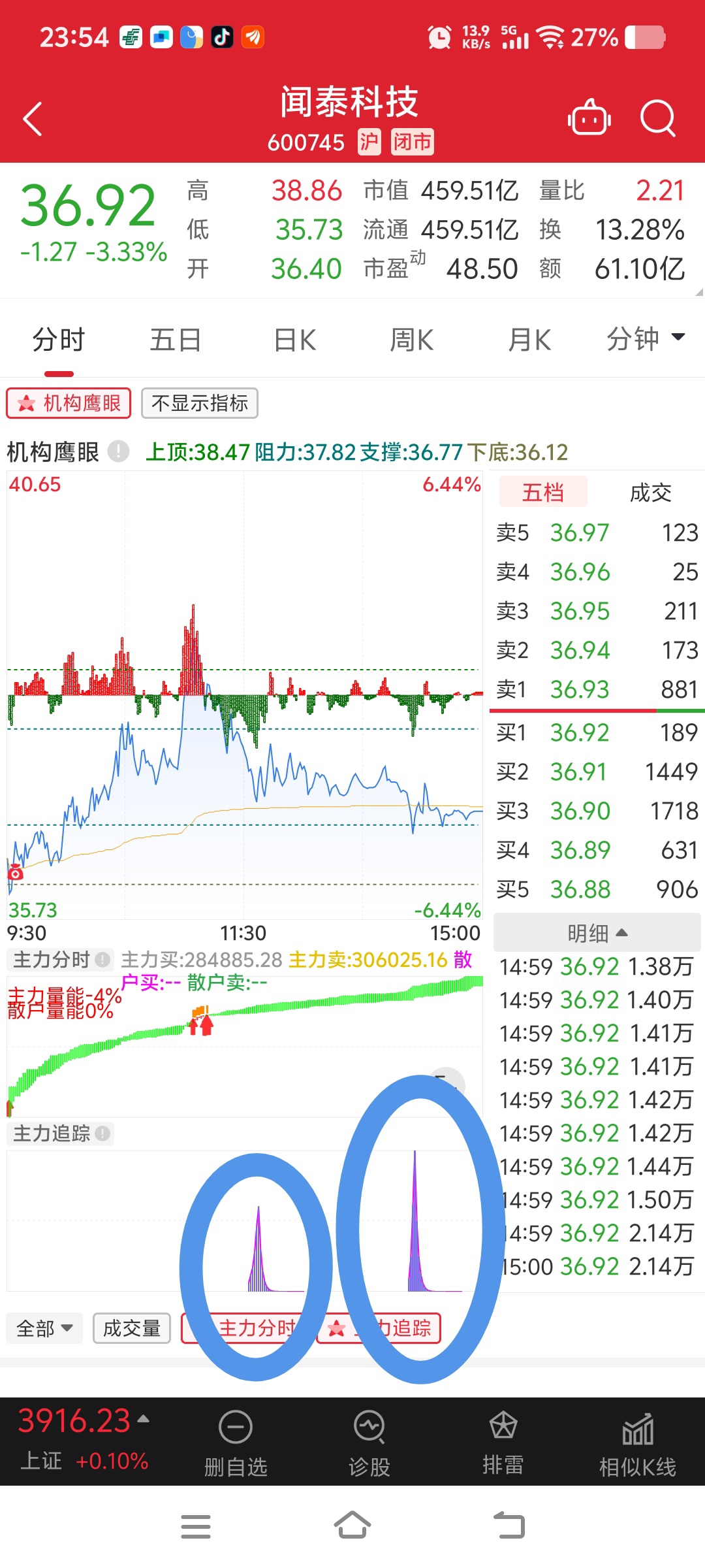 $闻泰科技(SH600745)$ 昨天下午有主力动手吸筹了。昨天我也进了点货。看看今天主力干不干大活。