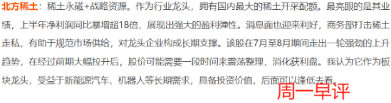 北方稀土:稀土永磁+稀缺资源。公司基本面方面,它在稀土行业拥有完整的产业链,资源储量比较丰富,是国内稀土行业的龙头企业之一。股价处于多头行情中,早盘小幅冲高之后,受限于今日低迷的行情,股价震荡回落翻绿。我觉得对于已经持有的仓位可以继续拿着,看看这股趋势能否延续,同时观察稀土价格走势和消息面的变化,如果说稀土方向作为反制工具再度催化的话,不排除股价在这个位置可以继续反包走上去。