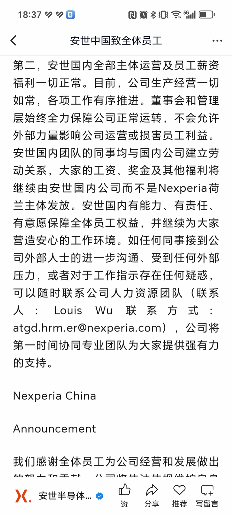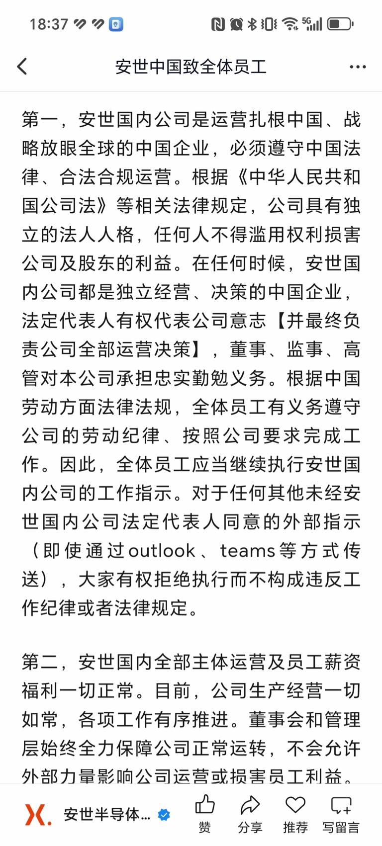 安世中国官方回应来了,股吧一天天被一些别有用心之人白天造谣小作文。现在怎么看?