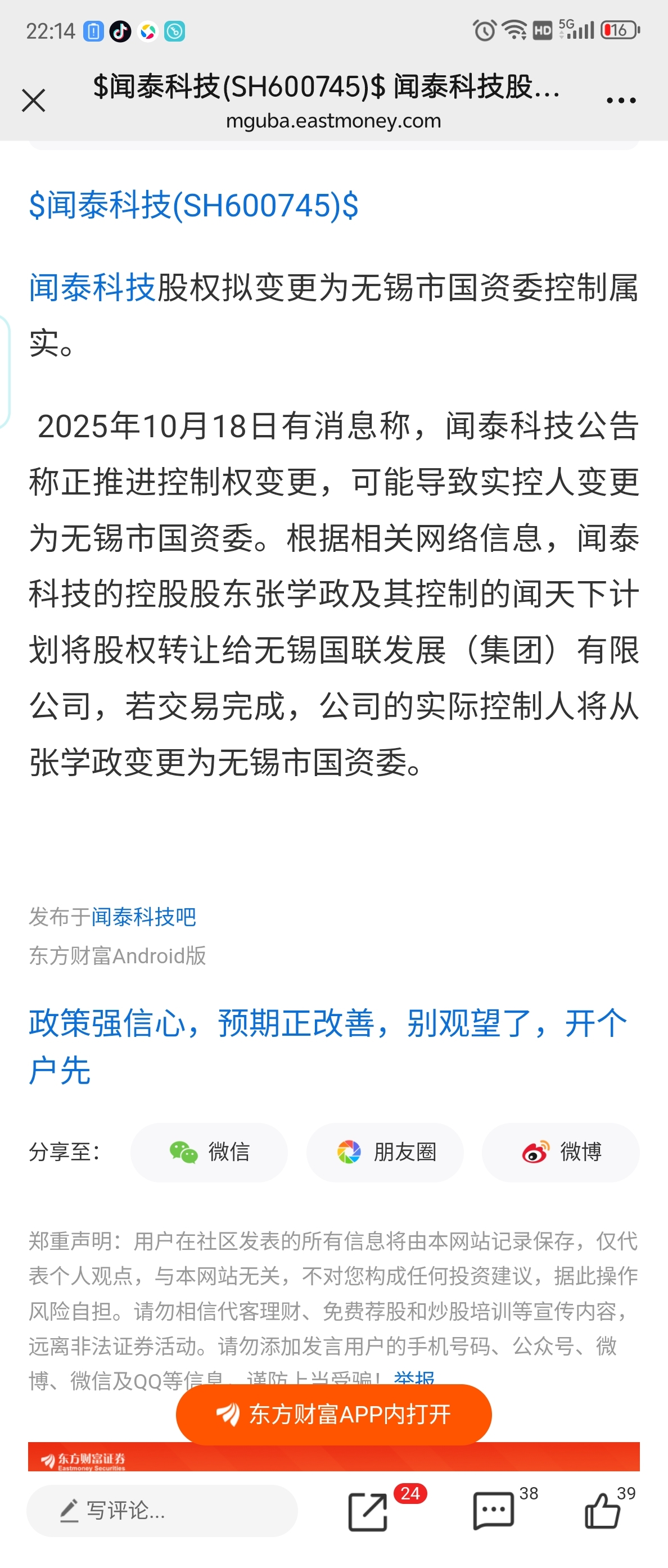 温馨提示: 1.根据《证券法》规定,禁止编造、传播虚假信息或者误导性信息,扰乱证券市场;2.用户在本社区发表的所有资料、言论等仅代表个人观点,与本网站立场无关,不对您构成任何投资建议。用户应基于自己的独立判断,自行决定证券投资并承担相应风险。《东方财富社区管理规定》